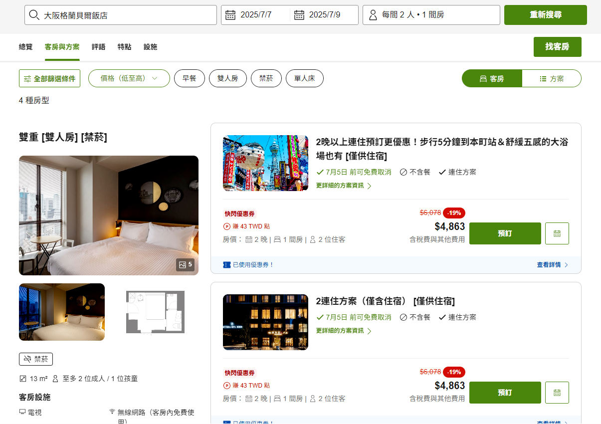 ▼有連住方案可選擇,比其他訂房網更具優勢。